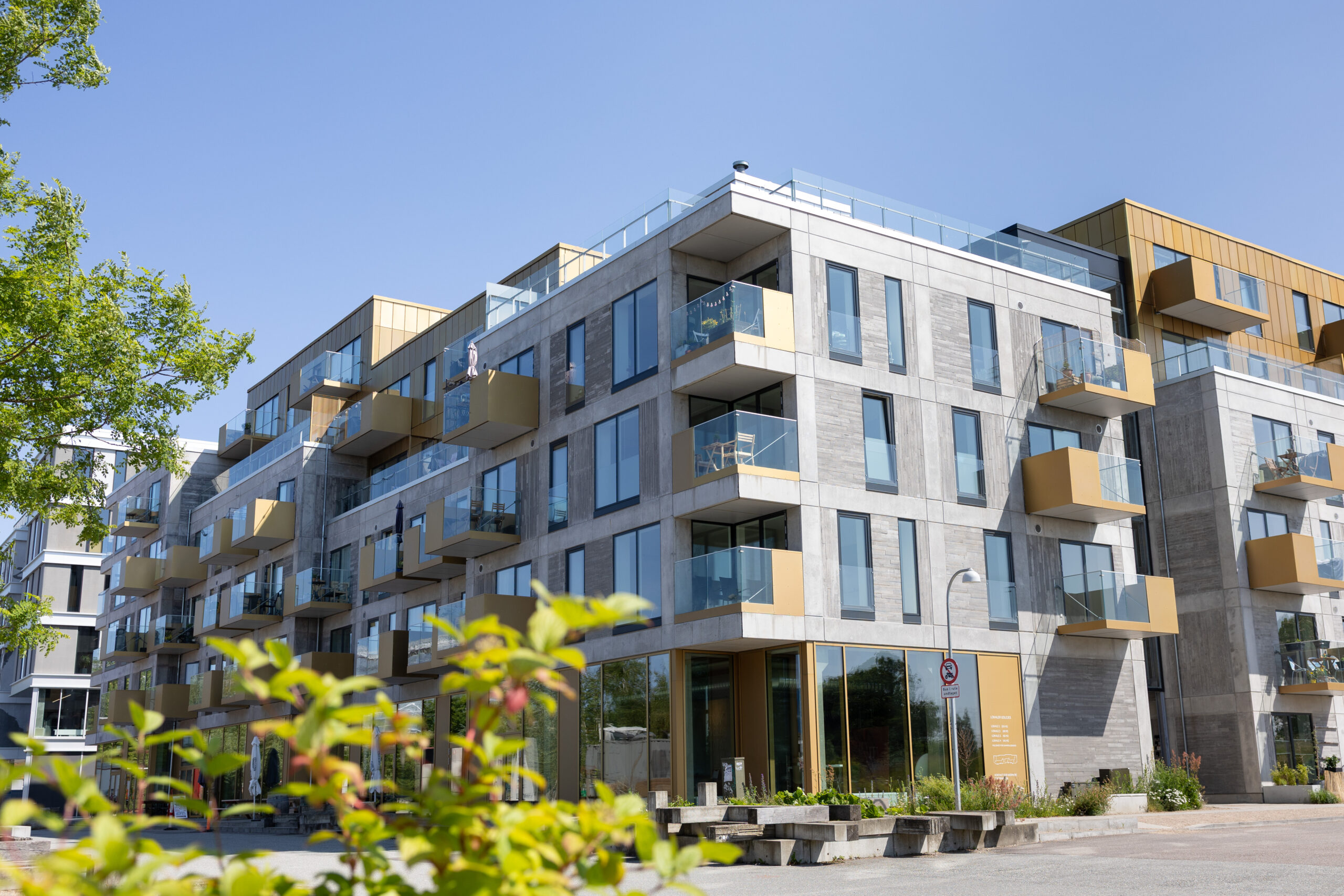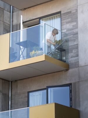 Der er altaner til alle boligerne og tagterrasser til penthouselejlighederne.